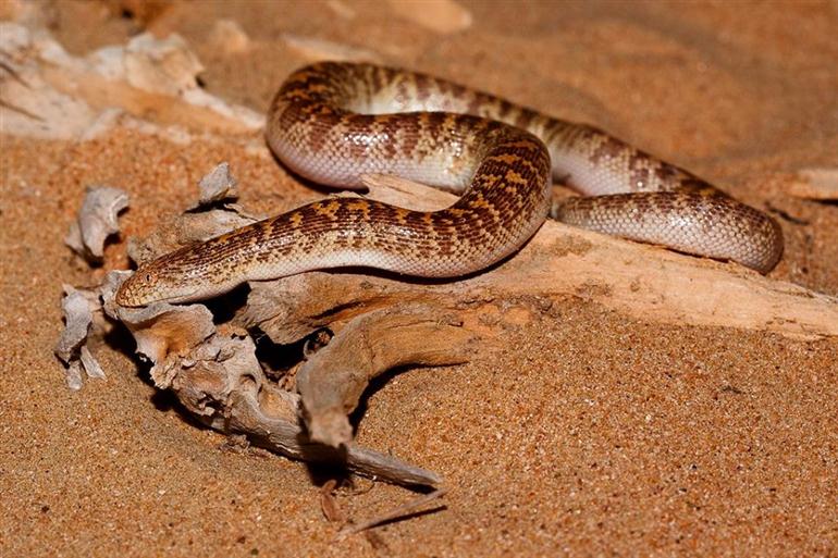 เจ้า งูทรายอาหรับ หรือ Arabian Sand Boa หรือ Jayakar’s sand boa นั้นเป็นงูที่ไม่มีพิษ พวกมันอาศัยอยู่ในทะเลทรายอาหรับ พบได้ทั้งทางตอนใต้ของอิหร่าน และทางตะวันออกของซาอุดิอาระเบีย เยเมน โอมาน รวมถึง คูเวตด้วยย ตัวโตเต็มที่ยาวประมาณ 40 ซม. มีลายสีดำหรือน้ำตาลอ่อน รวมไปถึง สีเหลือง สีส้ม และเทาเหลืองด้วย