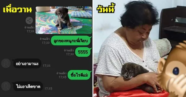 โดยแชทไลน์เป็นของเมื่อวานก่อน แต่พอมาวันนี้เธอก็พาลูกหมาตัวดังกล่าวเข้าบ้านอยู่ดี และสิ่งที่แม่ของเธอทำช่างแตกต่างจากข้อความในแชทจริงๆ เพราะคุณแม่อุ้มลูกหมาไว้ในอ้อมกอดอย่างรวดเร็ว