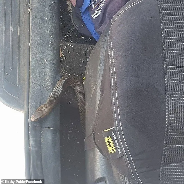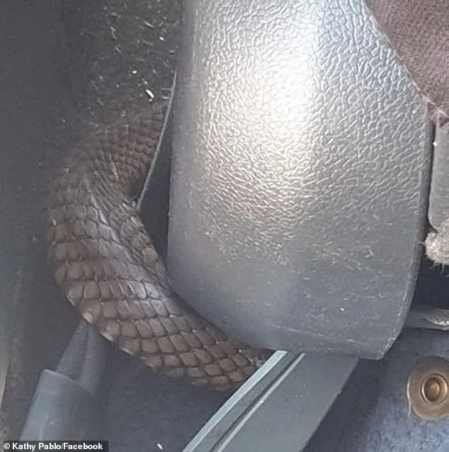นอกจากนี้ Ms Pablo ยังได้แบ่งปันภาพถ่ายงูที่ซ่อนในรถบน Facebook พร้อมกับโพสต์ข้อความว่า 'มันอยู่ใต้ที่นั่งที่เด็กชายตัวเล็กของฉันกำลังนั่งอยู่ โปรดระวังความแห้งแล้งทำให้สัตว์ป่าทั้งหมดเข้ามาใกล้เพื่อค้นหาอาหารและน้ำในรถของคุณ'