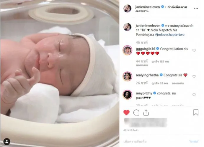 โดยล่าสุดเจนี่ เทียนโพธิ์สุวรรณ ได้เผยภาพของน้องโนล่า พร้อมข้อความว่า “ความสมบูรณ์ของคำว่า รัก Nola Napetch Na Pombhejara jmlovechaptertwo” ซึ่งก็มีเพื่อน ๆในวงการ รวมถึงแฟนคลับ เข้ามาแสดงความยินดีกันเป็นจำนวนมากเลยทีเดียว