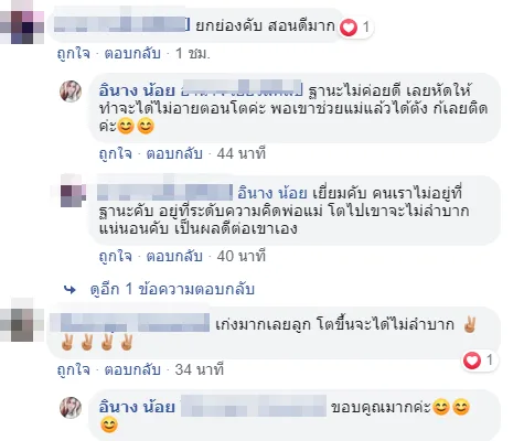 นอกจากนี้ยังระบุอีกว่าสิ่งที่หนูน้อยทำเช่นนี้มาเป็นเวลานานเพราะสภาพครอบครัวจนจึงอยากช่วยพ่อแม่หาเงินจากงานง่ายๆ ที่พอทำได้ อย่างน้อยสามารถนำมาเป็นค่าขนมไม่เดือดร้อนครอบครัวก็ยังดีทั้งนี้มีชาวเน็ตหลายคนเข้ามาชื่นชมในความขยันและกตัญญูซึ่งบอกเลยว่าน้อยครั้งนักที่เราจะเห็นเด็กวัยนี้ทำงานแทนการวิ่งเล่นกับเพื่อน