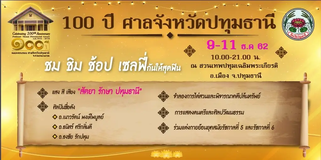 งานฉลองครบรอบ 100 ปี ศาลจังหวัดปทุมธานี