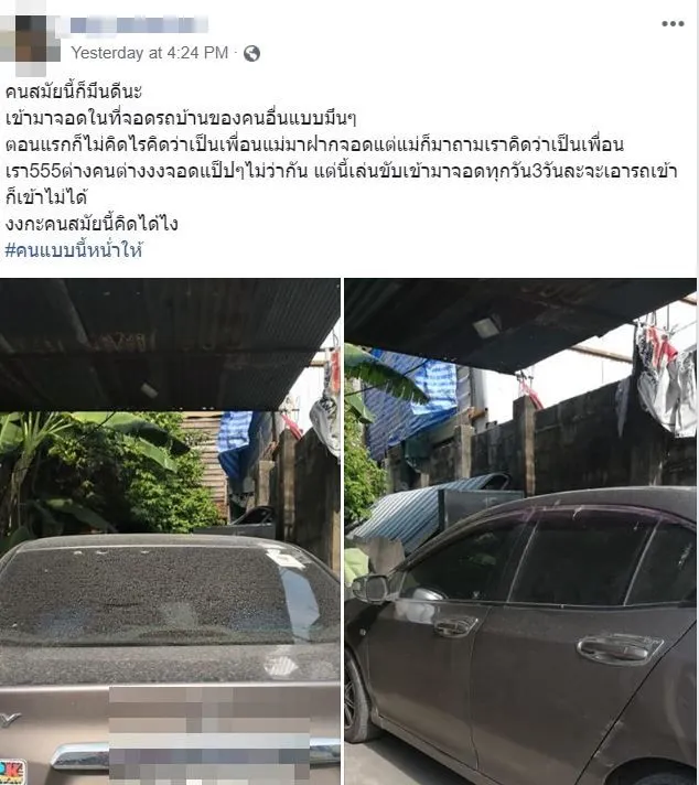 ตอนแรกก็ไม่คิดไรคิดว่าเป็นเพื่อนแม่มาฝากจอดแต่แม่ก็มาถามเราคิดว่าเป็นเพื่อนเรา555ต่างคนต่างงงจอดแป็ปๆไม่ว่ากัน แต่นี้เล่นขับเข้ามาจอดทุกวัน3วันละจะเอารถเข้าก็เข้าไม่ได้