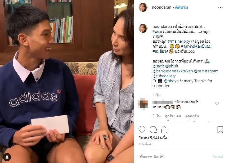 โดยทางด้าน สาวนุ่น ได้โพสต์คลิปพร้อมระบุข้อความเอาไว้ว่า ช้านี้มีกรี๊ดดดสสส…. อิแม่ เนื้อเต้นเป็นปลื้มมม…. ….รักลูกที่สุด ขอให้ลูก @maihellboy เจริญรุ่งเรืองคร๊าบบบ….ลูกทำดีต้องชื่นชม แม่ขี้อวด ยอมรับ!..555
