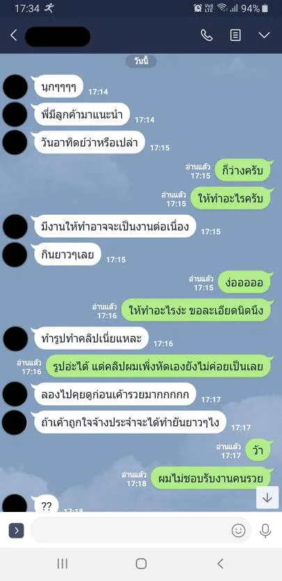 โดยบทสนทนาเริ่มต้นไปได้สักพัก ทางฝั่งเพื่อนเจ้าของโพสต์ได้พยายามเกลี้ยกล่อมให้ลองคุยดูก่อน เพราะอาจได้งานทำแบบต่อเนื่อง (รับทรัพย์เน้นๆ) จากคนที่อ้างว่า “รวยมาก” แบบยาวๆ