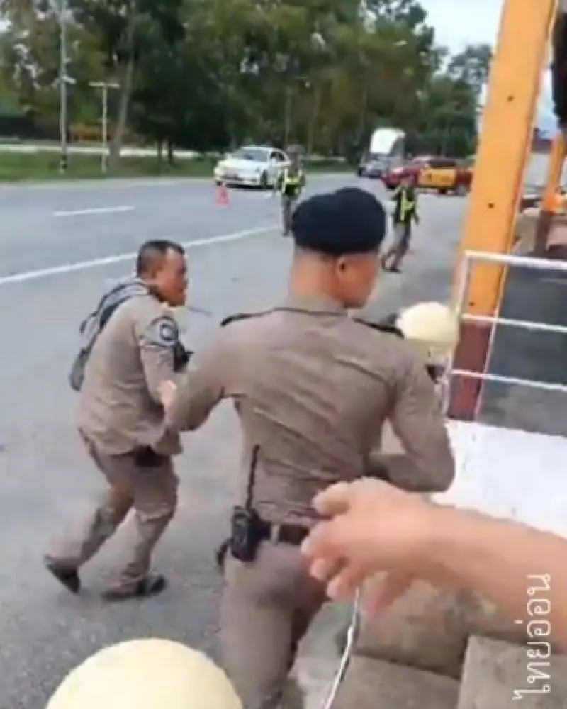 ขณะที่อยู่บริเวณป้อมตำรวจทางหลวงนั้น อยู่ดีๆก็ได้ยินเสียงระเบิดตู้ม เสียงดังสนั่น ก่อนที่เจ้าหน้าที่ตำรวจนายที่เรียกจับกระบะ จะวิ่งมาด้วยความเจ็บปวด มีอาการบาดเจ็บบางอย่างบริเวณท้อง เสื้อผ้าชุดตำรวจขาด ซึ่งเมื่อผู้ถ่ายคลิปรีบวิ่งไปดูที่รถตัวเองเเล้ว ก็พบว่ายางหลังซ้ายเกิดระเบิด มีรอยฉีกเเนวยาวที่เเก้มยางด้านบนติดกับซุ้มล้อ