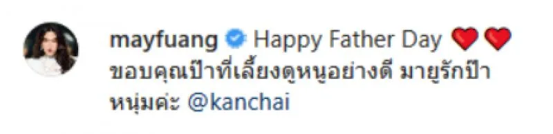 เรียกได้ว่าเป็นอีกหนึ่งครอบครัวที่น่ารักและอบอุ่น สำหรับ หนุ่ม กรรชัย และ เมย์ เฟื่องอารมณ์ ที่ถึงแม้ว่าจะไม่เคยมีภาพครอบครัวที่อยู่ด้วยกันพร้อมหน้าพร้อมตามาให้ได้เห็นสักเท่าไหร่ แต่ต้องบอกเลยว่าครอบครัวนี้เขารักมากจริงๆ เพราะว่าตอนนี้มีโซ่ทองคล้องใจ อย่าง น้องมายู มาคอยเติมเต็มความรัก และสร้างสีสันให้กับครอบครัว งานนี้คุณพ่อคุณแม่จึงโฟกัสที่ลูกกันอย่างเดียว ล่าสุด สาวเมย์นั้นได้ออกมาโพสต์รูปและข้อความถึงสามี เนื่องในวันพ่อว่า Happy Father Day ขอบคุณป๊าที่เลี้ยงดูหนูอย่างดี มายูรักป๊าหนุ่มค่ะ kanchai เรียกได้ว่าสามีนั้นทำหน้าที่พ่อของลูกได้ดีมาก จนภรรยาอดที่จะภูมิใจไม่ได้เลยทีเดียว ถึงแม้ว่าทั้งคู่นั้นจะไม่ค่อยหวานกันมาก แต่ก็รับรู้ได้ถึงความรักที่มีให้กันและกันค่า
