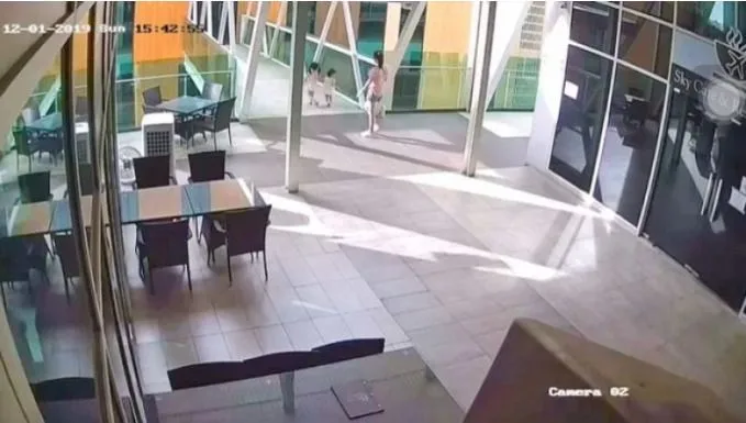ขณะที่ภาพจากกล้องวงจรปิดเผยให้เห็นแม่ ของเด็กหญิงที่เดินตามมาติดๆ รีบจูงลูกสาวคนเล็กวิ่งลงไปชั้นล่าง เพื่อดูลูกสาวคนโตที่ตกลงไป แม้จะมีหลักฐานยืนยันเหตุการณ์