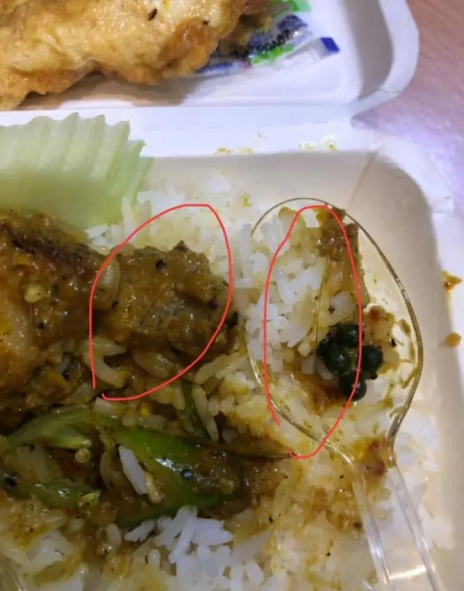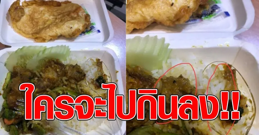 “วันนี้ สั่งข้าว จาก App ร้านหนึ่ง พอเปิดกล่องจะกิน เจอแบบนี้ กินไม่ลงเลย ทิ้งอย่างเดียว ไม่ลงชื่อร้านนะครับ ใครอยากรู้ร้านไหน ทักข้อความมา จะโทรติดต่อร้านก็ไม่มีในเบอร์”