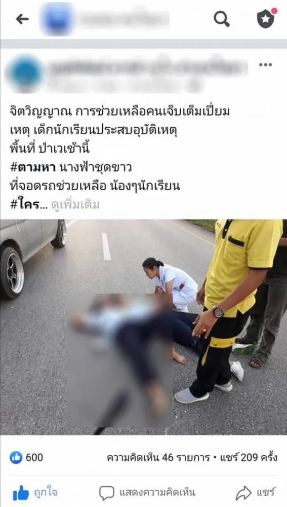 การขับขี่รถยนต์หรือรถจักรยานต์นั้นมีความเสี่ยงในสังคมปัจจุบัน เพราะบนท้องถนนมีจำนวนรถยนต์ที่เพิ่มมากขึ้นและบางครั้งก็มีผู้ขับขี่ที่ไม่ยอมปฏิบัติตามกฏจราจรก็มีเพิ่มมากขึ้นเช่นกัน จะทำให้เห็นว่าในตลอดระยะเวลาที่ผ่านมาจะมีข่าวเกี่ยวกับการเกิดเหตุของรถยนต์และรถจักรยานยนต์เป็นจำนวนมาก เป็นอีกหนึ่งเรื่องราวที่สร้างความประทับใจให้กับผู้คนในโลกโซเชียลเมื่อผู้ใช้เฟซบุ๊กรายหนึ่งโพสต์ข้อความว่า โซเชียลตามหา นางฟ้าชุดขาว ในเฟส รวมพล คนไชยา จากเหตุการณ์ เด็กนักเรียนเกิดเหตุพื้นที่อำเภอไชยา ของเช้าวันนี้ 6 ธันวาคม มีภาพ หญิงสาวท่านหนึ่ง จอดรถลงช่วยเหลือก่อนที่รถกู้ภัยจะถึงที่เกิดเหตุ เพื่อนำส่งโรงบาล ซึ่งสมาชิกกลุ่มรวมพล ได้ให้ข้อมูล ว่าหญิงสาวใจดี ท่านนั้นคือ นางสาวเดือนเพ็ญ ภูศรีเทศ หรือชื่อเล่น เดือน เจ้าหน้าที่โรงบาลวิชาชีพ จากโรงบาลท่าโรงช้าง