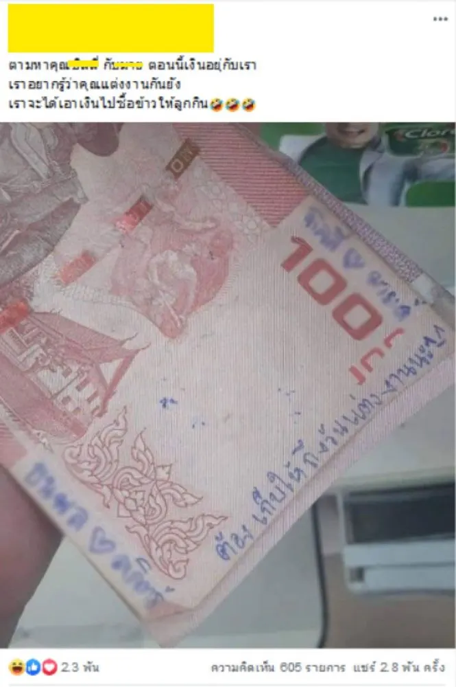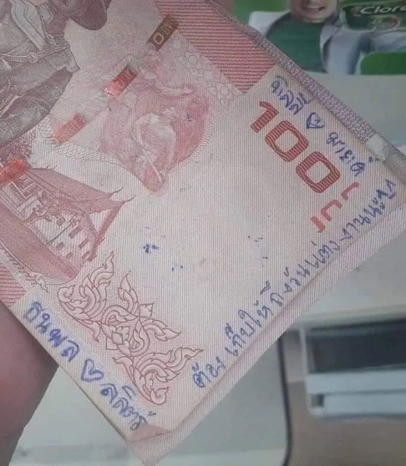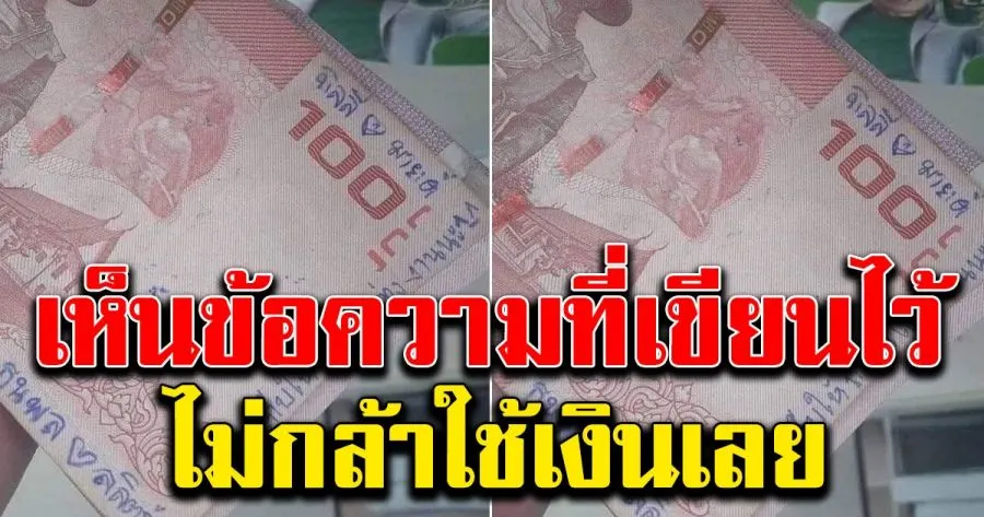 สาวโพสต์ เจอแบงค์ 100 มีข้อความเขียนไว้