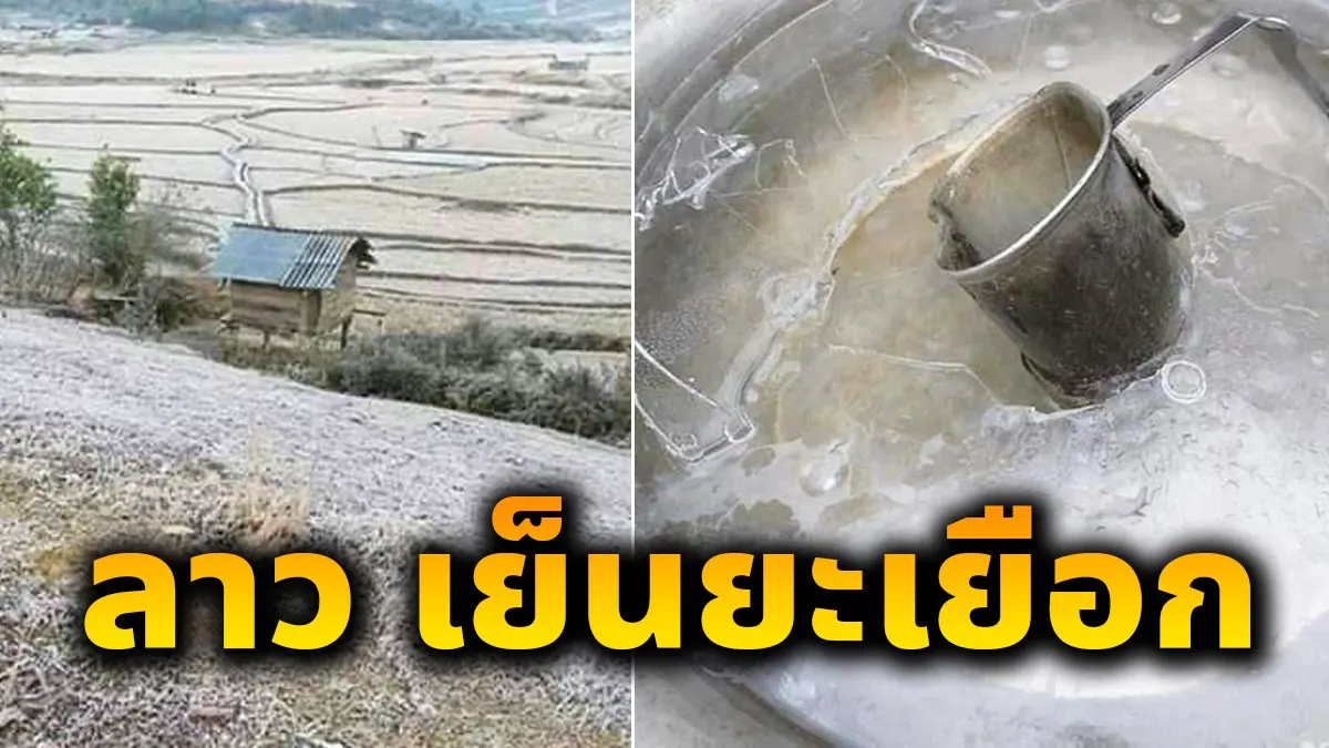 ลาวเย็นยะเยือก น้ำในกาละมังกลายเป็นน้ำแข็ง ทุงนาขาวโพลน
