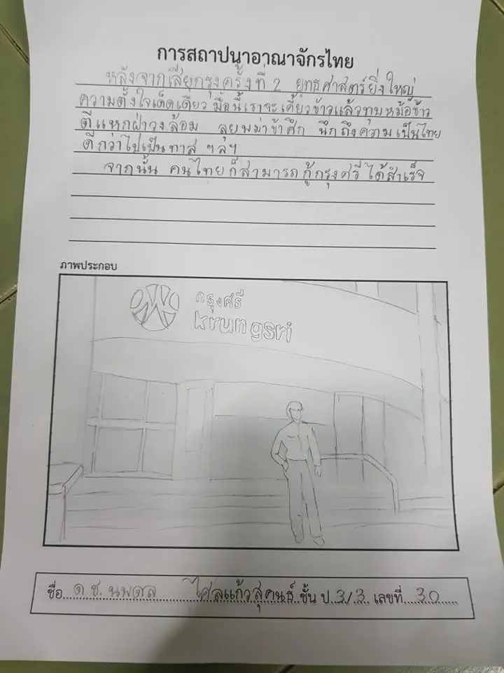 เด็กชาย ป.3 ทำการบ้านประวัติศาสตร์ไทย ชาวเน็ตเห็นแล้วอยากรู้คะแนนที่ได้ทันที