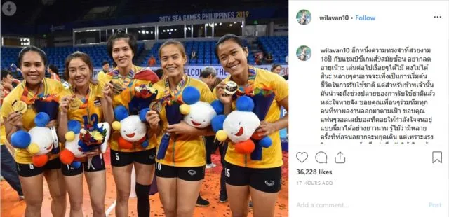 อีกหนึ่งความทรงจำที่สวยงาม 18 ปี กับแชมป์ซีเกมส์ 9 สมัยซ้อน อยากลดอายุเน๊าะ เล่นต่อไปเรื่อยๆได้มั้ย คงไม่ได้สินะ หลายๆ คนอาจจะเพิ่งเป็นการเริ่มต้นชีวิตในการรับใช้ชาติ แต่สำหรับข้าพเจ้านั้นมันน่าจะถึงช่วงปลายของการรับใช้ชาติแล้ว ใจหายจัง ขอบคุณเพื่อนๆร่วมทีมทุกคนที่ทำผลงานออกมาตามเป้า ขอบคุณแฟนๆวอลเลย์บอลที่คอยให้กำลังใจจนอยู่แบบนี้มาได้อย่างยาวนาน รู้มั้ยว่ามีหลายครั้งที่ท้อจนอยากจะหยุดเดิน แต่เพราะแรงใจจากคนรอบข้างนี่แหละที่ผลักให้เดินหน้าต่อ กำลังใจสำคัญกับนักกีฬามากนะ ไม่ว่านักกีฬาคนนั้นจะแข็งแกร่ง แข็งแรง ทั้งกายและใจแค่ใหนก็ตาม แต่เรายังมีฝันร่วมกันนะ สู้ด้วยกันต่ออีกนิดเดียว เราต้องทำได้ ขอบคุณแก๊งนี้ที่เคียงข้างกันตลอดมาแต่ขาดพี่นาไปอีกคน #ลงไว้เผื่ออนาคตให้ลูกหลานได้มาอ่านเนาะ555