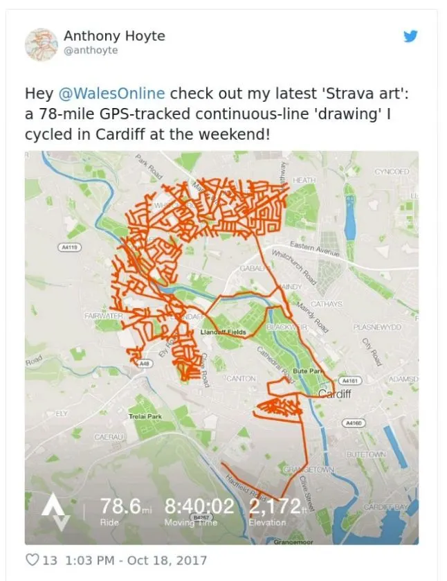 “นักปั่น” ทุ่มเวลากว่า9ชั่วโมง ปั่นระยะ128กิโลเมตร เพื่อวาดเป็นภาพบนแอป