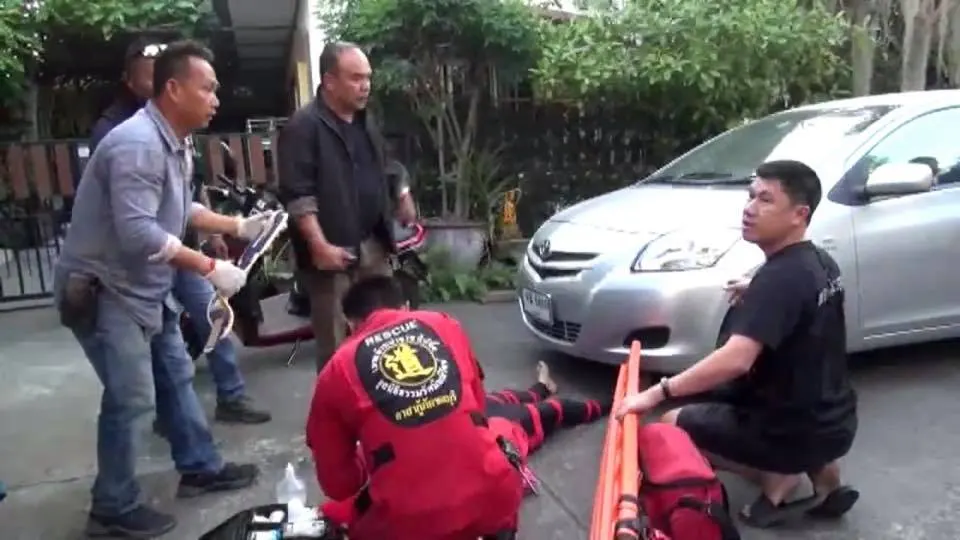 เฟซบุ๊กแฟนเพจ สงสัย V.1 รายงานว่า เมื่อเวลา 17.40 น.วันที่ 11 ธันวาคม นี่คือภาพตำรวจ สภ.เมืองชลบุรี พร้อมด้วยชาวบ้าน และเจ้าหน้าที่กู้ภัยมูลนิธิธรรมรัศมีมณีรัตน์ เข้าช่วยเหลือนางสุพิชฌาย์ ธนาสิทธิ์ถิรพร อายุ 56 ปี ได้รับบาดเจ็บอาการสาหัสมีรอยฟกช้ำที่ใบหน้า ปากแตก ที่หน้าอกมีรอยเขียว ร้องว่าเจ็บอยู่ตลอดเวลา นอนอยู่บริเวณหน้าบ้านเลขที่ 44 / 47 หมู่บ้านปริญญาวิลล์ หมู่ 4 ต.หนองรี อ.เมือง จ.ชลบุรี