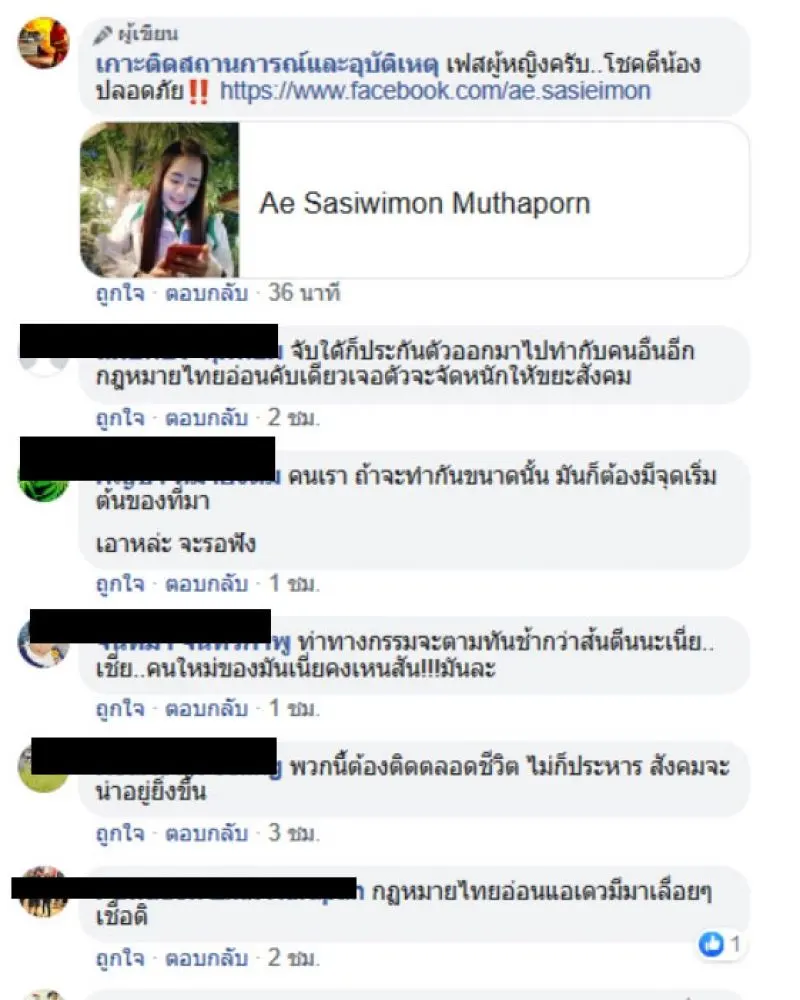 หลังจากที่ภาพของคนร้ายคนดังกล่าวได้ถูกเผยแผ่ออกไปในสื่อสังคมออนไลน์ ทำให้ชาวเน็ตรวมใจช่วยกันส่งต่อโพสต์ดังกล่าวเป็นจำนวนมาก ทั้งนี้ชาวโซเชียลส่วนใหญ่ยังได้เข้ามาแสดงความคิดเห็นเกี่ยวกับเรื่องดังกล่าวอีกว่า ตบตีผู้หญิงก็ไม่สมควรแล้ว นี้ใช้อาวุธอีก สังคมสมัยนี้