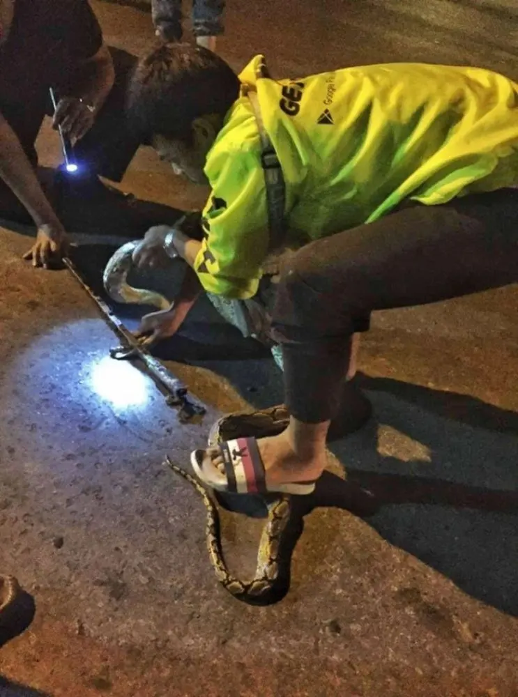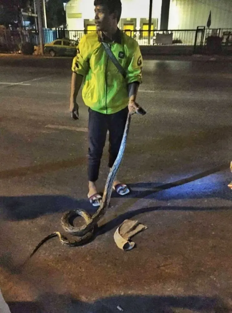 หนุ่มขับ Get เจองูเหลือมเข้าบ้าน รีบตัดสินใจเข้าช่วยเหลือ