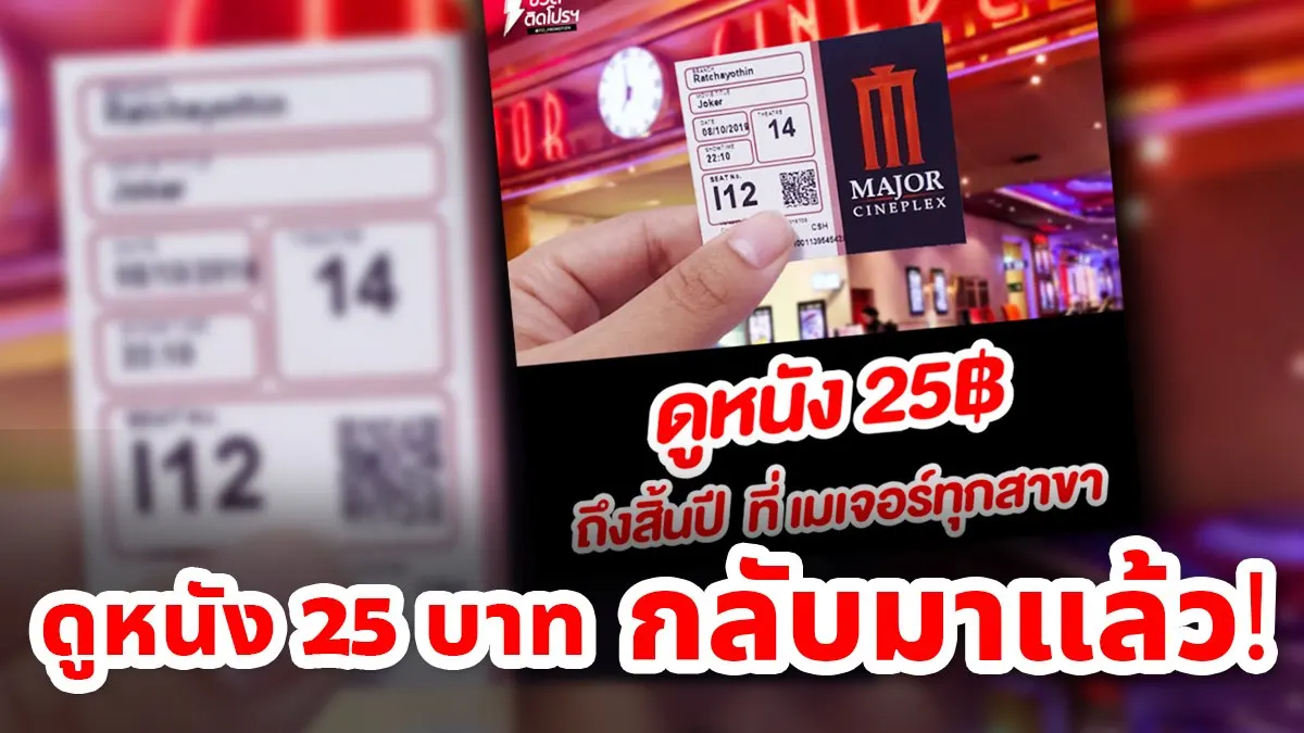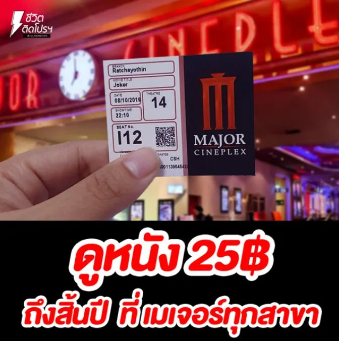 โปรหนังเมเจอร์ ราคา 25บาท ทุกเรื่องทุกรอบ ยาวถึงสิ้นปีนี้