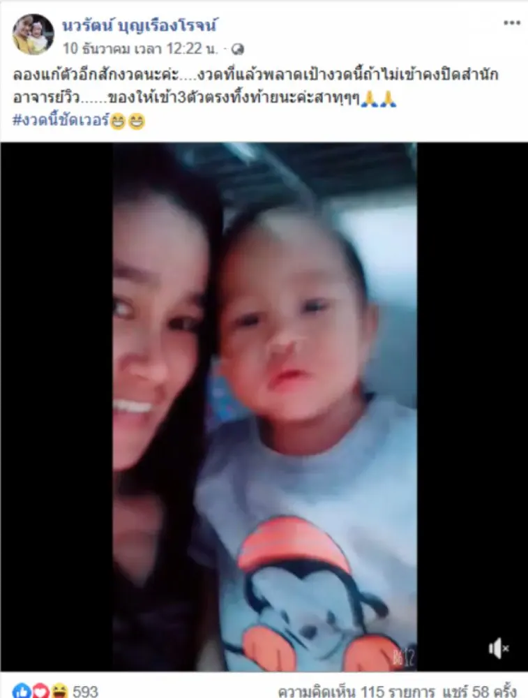 ใกล้เข้ามาแล้วสำหรับการประกาศผลรางวัลสลากกินแบ่งรัฐบาล ประจำวันที่ 16 ธันวาคม 2562 ทีมงาน viralsfeedpro เลยจะพามาดูเลขที่หลายคนกำลังตามหา ซึ่งมาจาก น้องชมวิว ที่ให้ถูกมาหลายครั้งแล้ว โดยผู้ใช้เฟซบุ๊กชื่อ นวรัตน์ บุญเรืองโรจน์ ได้โพสต์คลิปพร้อมระบุข้อความว่า ลองแก้ตัวอีกสักครั้งนะคะ ครั้งที่แล้วพลาดเป้าครั้งนี้ถ้าไม่เข้าคงปิดสำนักอาจารย์วิว ของให้เข้า3ตัวตรงทิ้งท้ายนะคะ