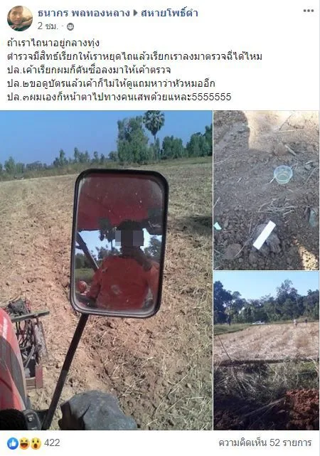 หนุ่มสุดงง แบบนี้ก็ได้เหรอ ไถนาอยู่กลางทุ่งจู่ๆเจ้าหน้าที่ตำรวจเรียกลงไปเพื่อตรวจฉี่ เจ้าตัวก็เดินไปให้ตรวจอย่างซื่อๆ หลังจากนั้นจึงมาโพสต์เล่าในกลุ่ม