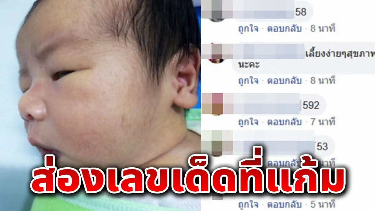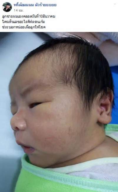 ในเฟซบุ๊ก พริ้ต้อมมมม ตัวร้ายยยยย โพสต์ข้อความระบุว่า ลูกชายผมเองคลอด วันที่ 10 ธันวาคม ใครเห็นเลขอะไรศับตรงแก้ม ช่วย บอกหน่อยเผื่อลูกให้โชค