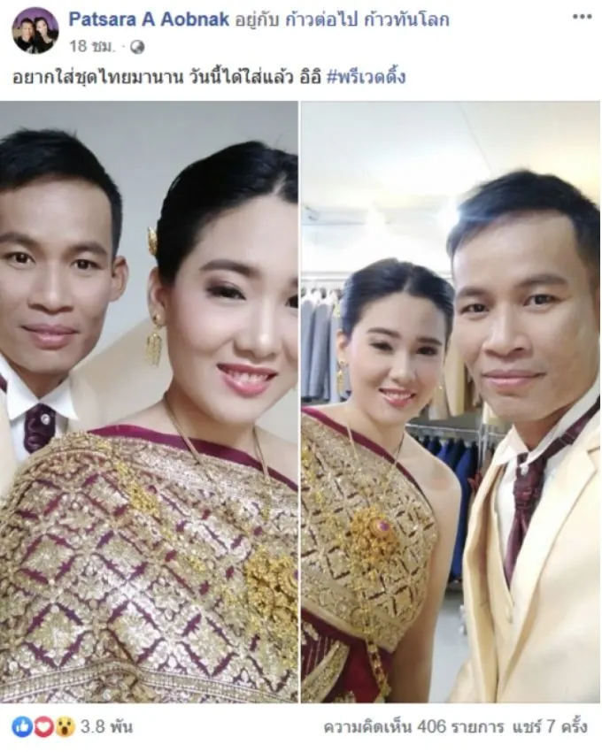 หลังจากนั้น น้องบี ได้ออกมาโพสต์ความคืบหน้าความสัมพันธ์กับหนุ่มคนใหม่ เป็นภาพตนเองกับแฟนหนุ่มในชุดไทยพรีเวดดิ้ง พร้อมระบุข้อความว่า อยากใส่ชุดไทยมานานแล้ว วันนี้ได้ใส่แล้ว อิอิ พรีเวดดิ้ง
