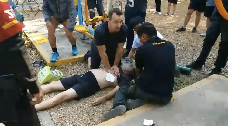 ด้านผู้โพสต์ระบุว่า "ตามหาฝรั่งในรูปค่ะ ใครเจอช่วยทักเราที เค้าช่วยชีวิตพ่อแฟนเราไว้ที่สวนลุมเมื่อบ่ายศุกร์ 6 ธ.ค. 62 จากที่รู้คือพ่อแฟนวูบหมดสติ+หัวใจหยุดเต้น เค้า CPR จนหัวใจกลับมาเต้น และมีพี่กู้ภัยช่วยนำส่ง รพ จุฬา พวกเราอยากขอบคุณเค้า อยากบอกว่าคนที่เค้าช่วยปลอดภัยแล้ว"