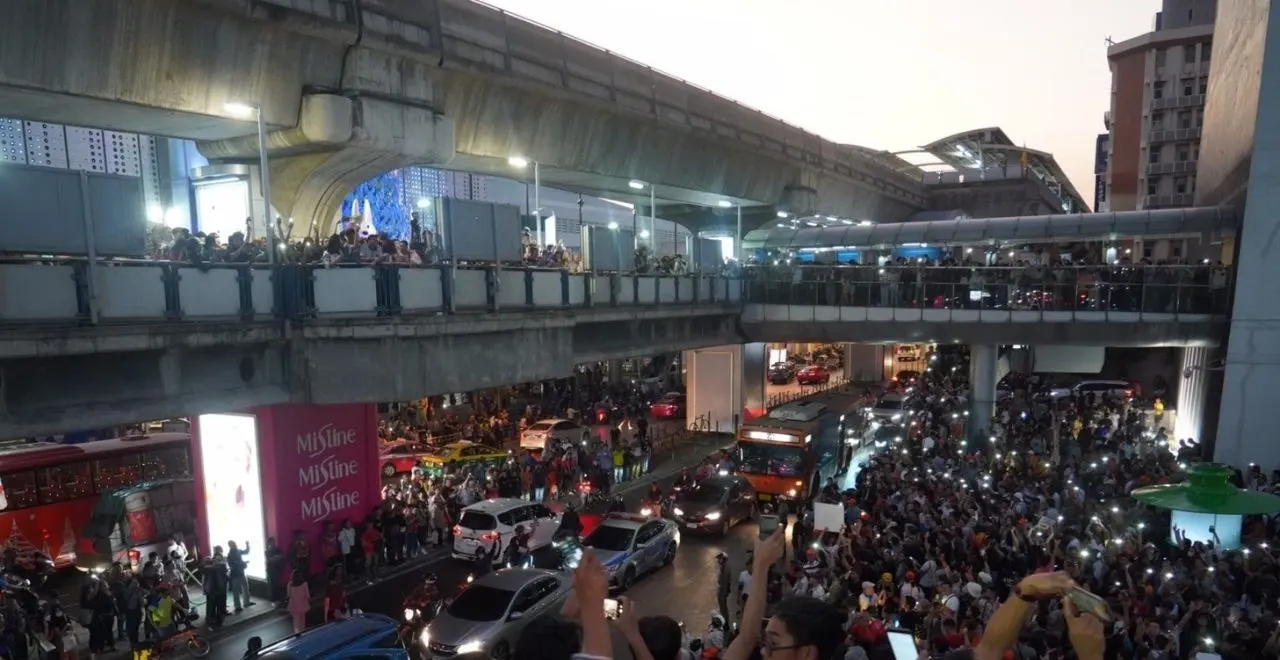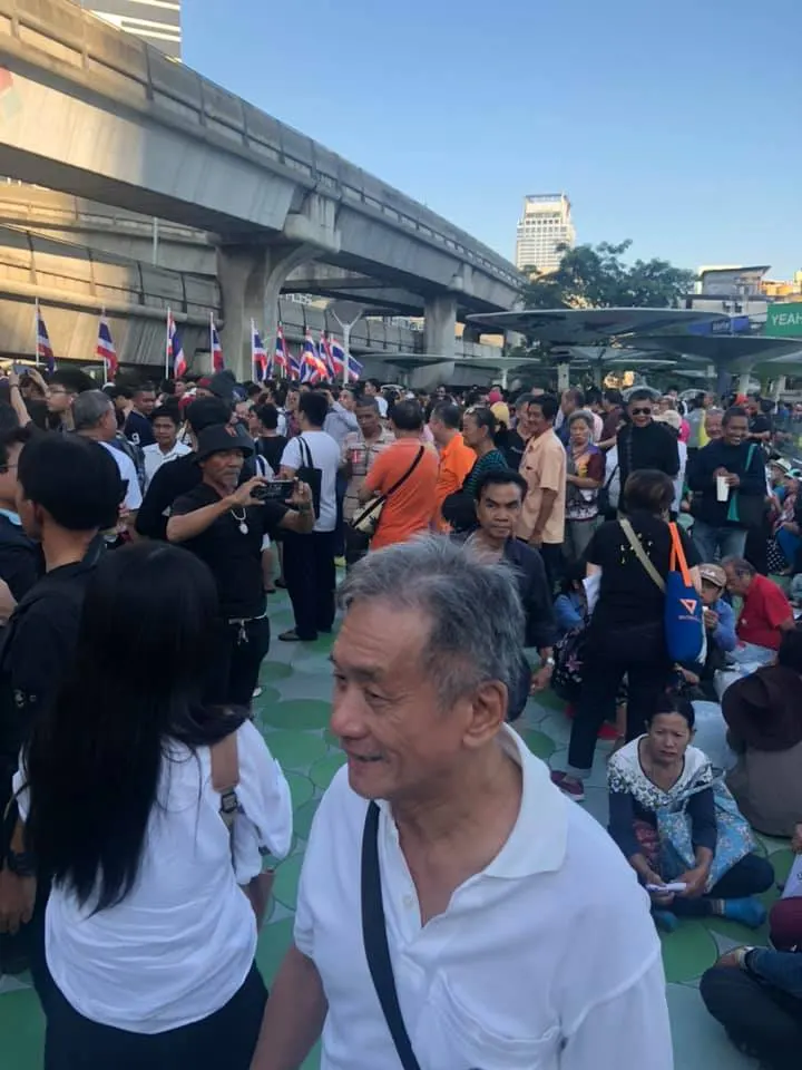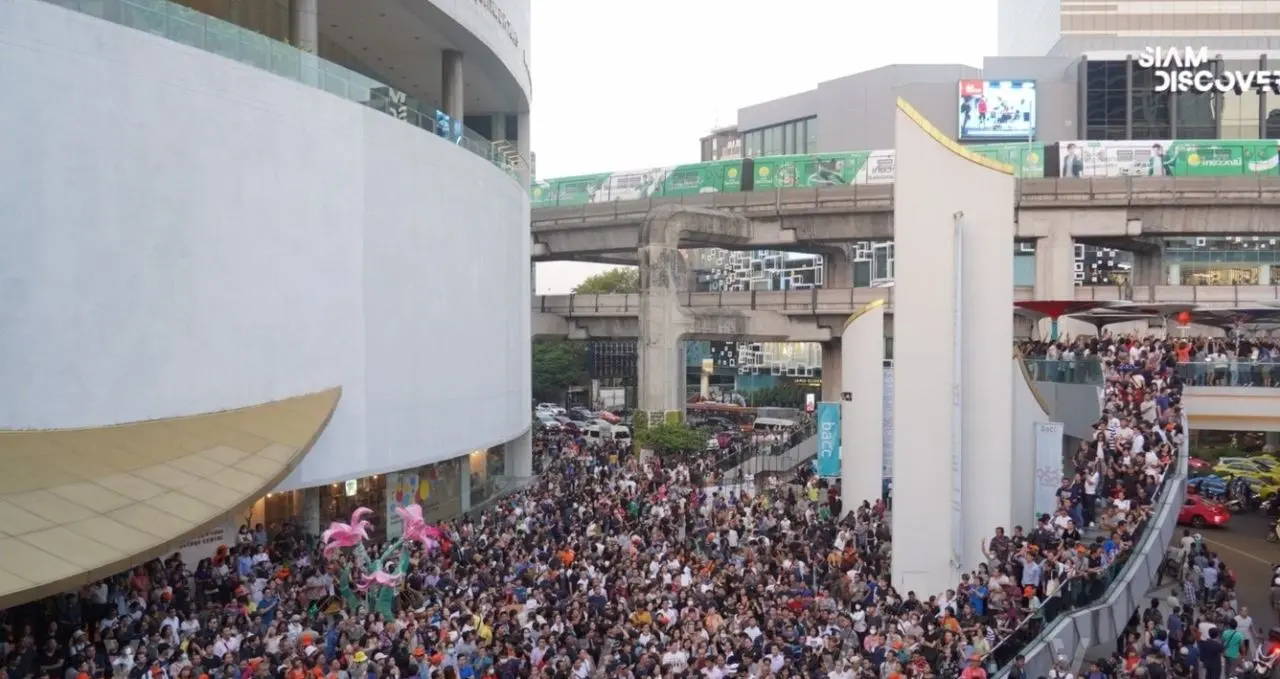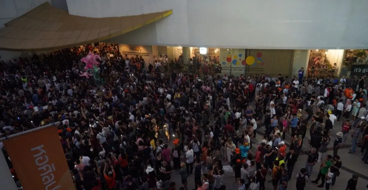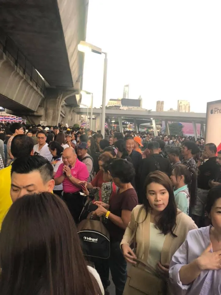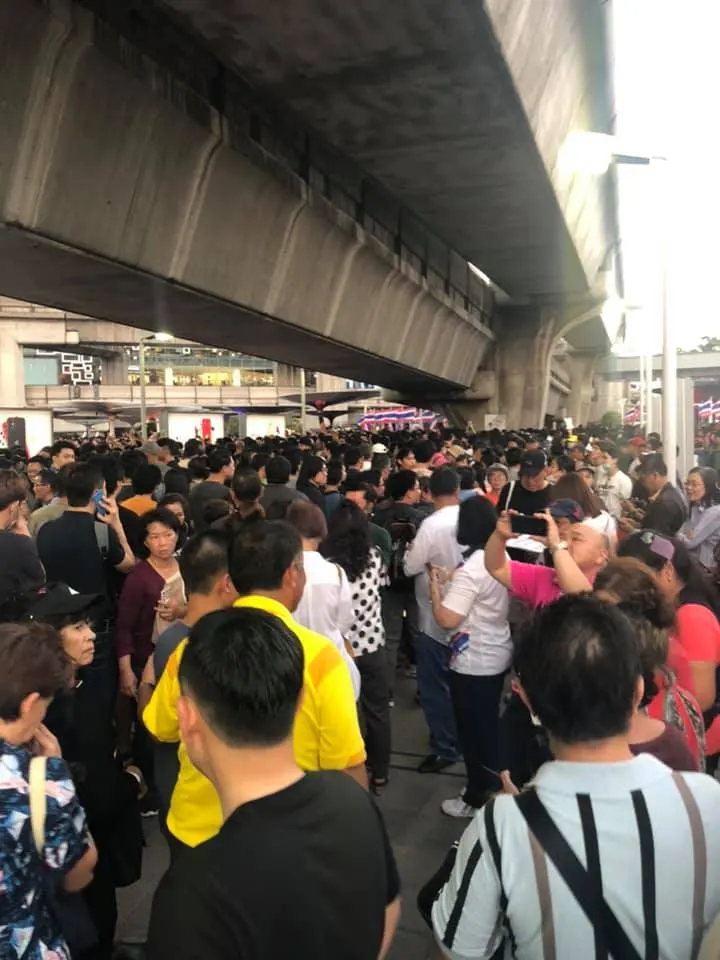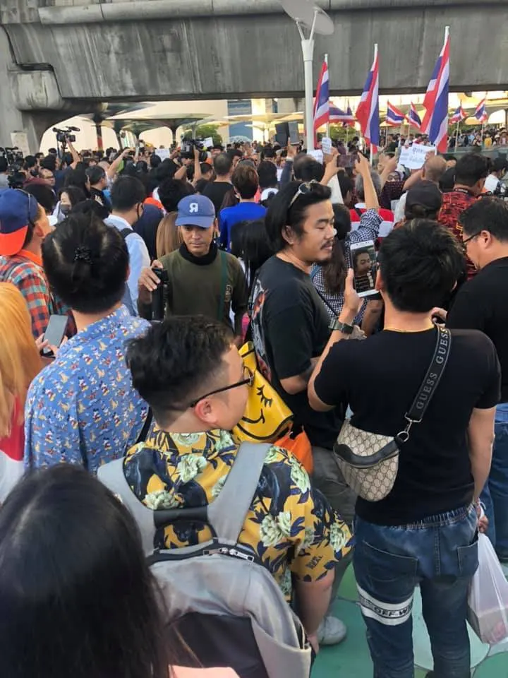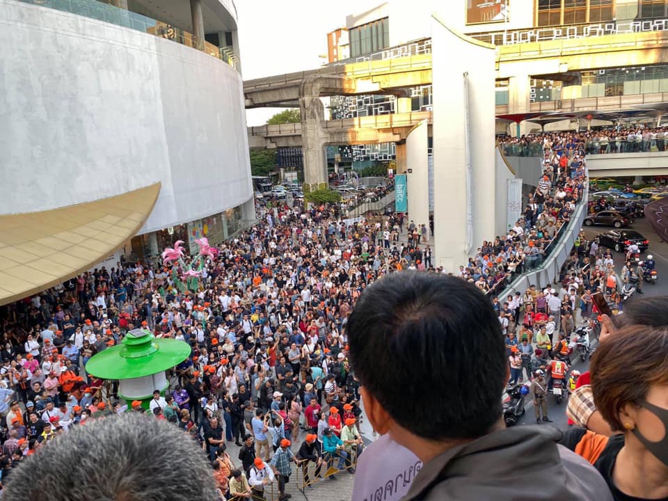 ภาพบรรยากาศกิจกรรมชุมนุม ที่สกายวอล์ค หน้าห้างสรรพสินค้ามาบุญครอง