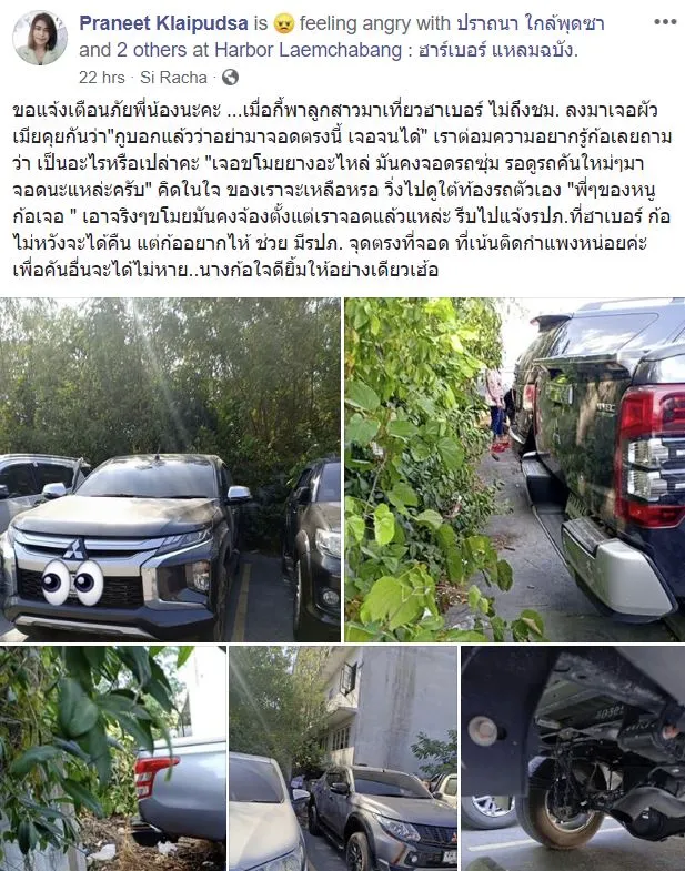 โดยทางผู้ใช้เฟซบุ๊ค Praneet Klaipudsa ได้เตือนภัยขณะเดินทางไปยังห้างสรรพสินค้า Harbor Laemchabang : ฮาร์เบอร์ แหลมฉบัง