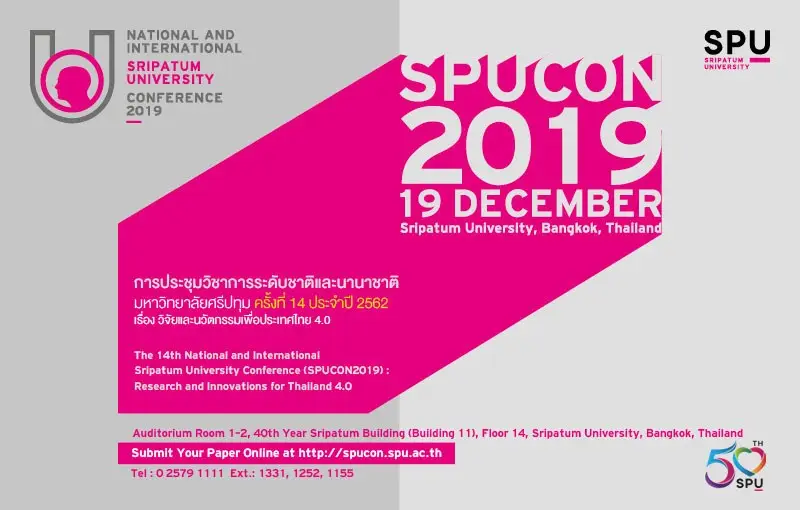 ม.ศรีปทุม ขอเชิญร่วมงานและร่วมนำเสนอบทความวิจัย ในการประชุมวิชาการระดับชาติและนานาชาติ ครั้งที่ 14 ประจำปี 2562 (SPUCON 2019)