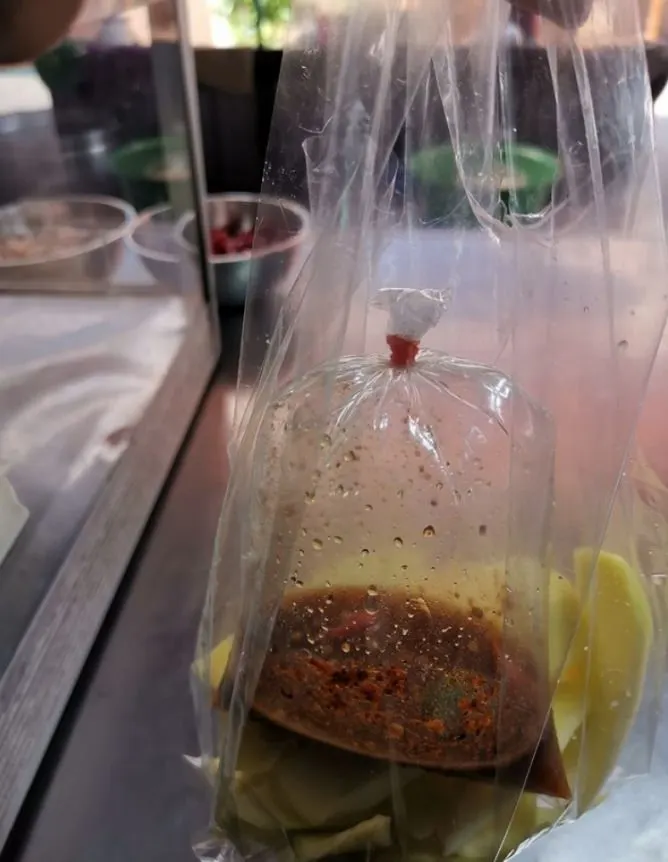 หลายคนอาจจะงงว่า อ้าวก็เขียนไว้ 20 บาท ทำไมจ่ายตั้ง 50 ป้ายเขียนไว้ 20 บาทจริงค่ะ แต่เป็น กะปิหวาน ถุงละ 20 บาท ดังนั้นเวลาเรา ถามไปว่าทำไม 50 บาท เค้าก็จะบอกว่า ก็กะปิหวาน 20 บาท ไงส่วนมะม่วง 30 บาท เค้าไม่ได้บอกว่า มะม่วงถุงละ 20 บาทซะหน่อย