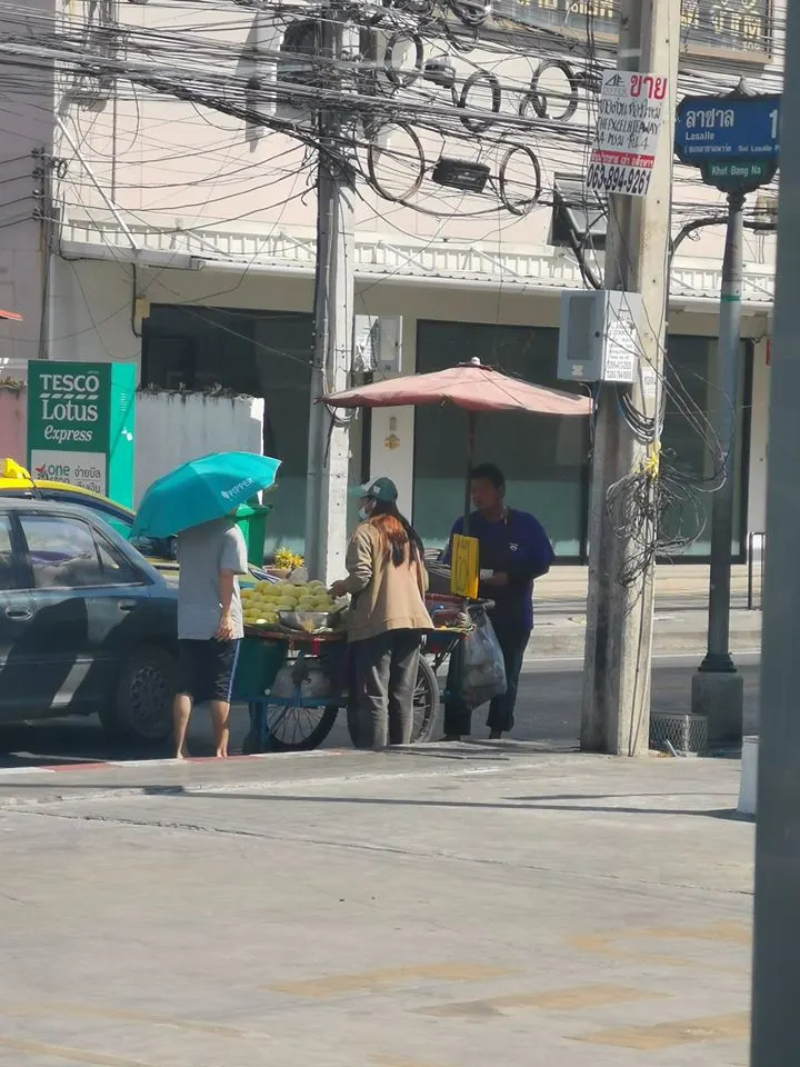เตือนภัยมิจฉาชีพผู้ไม่หวังดี เเฝงมาในคราบพ่อค้าเเม่ค้าเข็นขายมะม่วงตามท้องถนนย่าน ลาซาล บางนา สำโรง มักจะมีการเปลี่ยนสถานที่ไปเรื่อยๆไม่ซ้ำ มีลูกค้าเข้าไปซื้อเเล้วตกเป็นเหยื่อมากมายหลายราย วีรกรรมเพียบ ยาวเป็นห่างว่าว เข้าขั้นเเสบสุดๆ