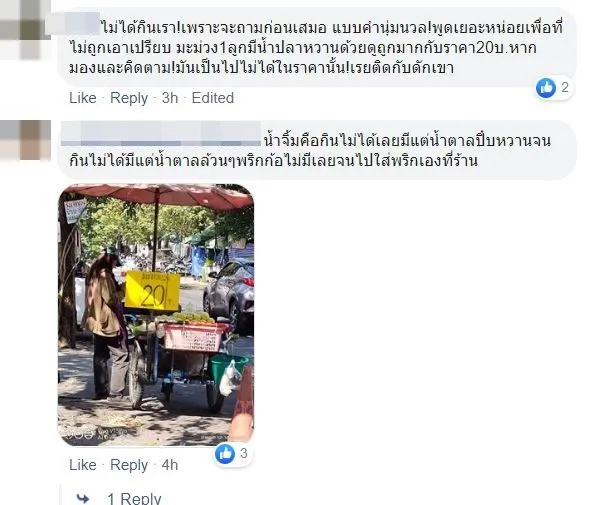 หลายคนอาจจะงงว่า “อ้าว..ก็เขียนไว้ 20 บาท ทำไมจ่ายตั้ง 50” ป้ายเขียนไว้ 20 บาทจริงค่ะ แต่เป็น “กะปิหวาน ถุงละ 20 บาท” ดังนั้นเวลาเราถามไปว่าทำไม 50 บาท เค้าก็จะบอกว่า ก็กะปิหวาน 20 บาท ไงส่วนมะม่วง 30 บาท”เค้าไม่ได้บอกว่า “มะม่วงถุงละ 20 บาทซะหน่อย