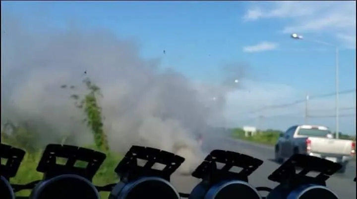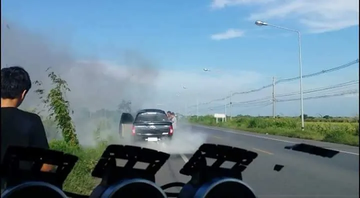 ผมก็กลับรถ เพื่อย้อนไปบอกเขาว่า ให้รีบดับเครื่อง แต่พอมาถึง เจ้าของรถก็ขึ้นรถขับออกไปเลย ผมก็รีบขับตาม แต่เขาไปได้ไม่ถึง 10 เมตร สิ่งที่ผมคิดไว้มันก็เกิดขึ้นจริงๆ