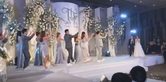 ถือว่าเป็นอีกหนึ่งไอเดียทำเซอร์ไพรส์ที่สุดยอดมากๆ เมื่อทีมเพื่อนเจ้าสาวซึ่งเป็นเด็กนาฏศิลป์พร้อมใจจัดเซอร์ไพรส์ให้ในงานแต่งงาน โดยเพื่อนเจ้าสาวจำนวนหลายสิบคนเรียงแถวรำฟ้อนอวยพรบนเวที งานนี้คู่บ่าวสาวถึงกับอึ้งไปเลยทีเดียว