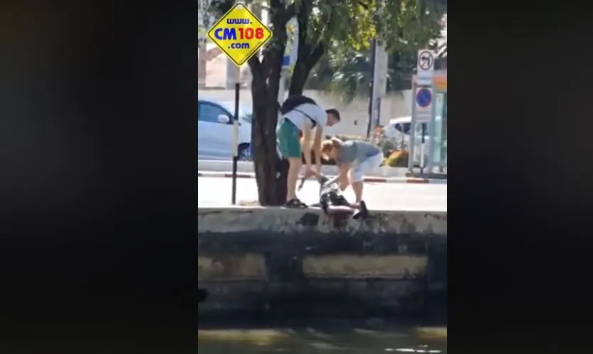 2นักท่องเที่ยวเดินผ่านคูเมืองเชียงใหม่ เเสดงน้ำใจอันน่าชื่นชม