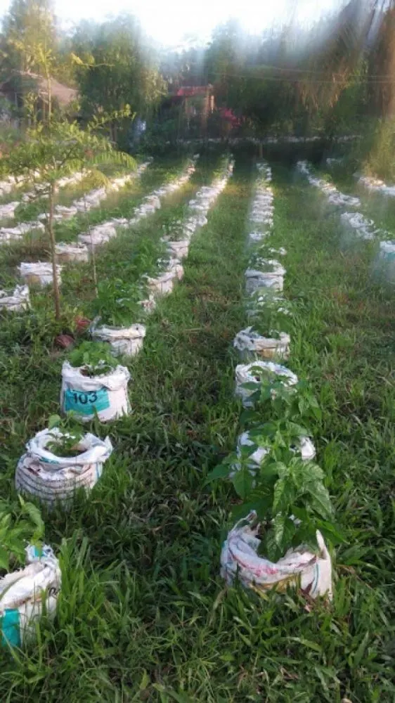 -จัดวาง ถุงกระสอบพริก เป็นแถวยาว หมั่นรดน้ำเช้าเย็น ดูแลโรคและแมลงศัตรูพืช จนกว่าพริกจะเติบโตให้ผลผลิตสามารถเก็บเกี่ยวได้