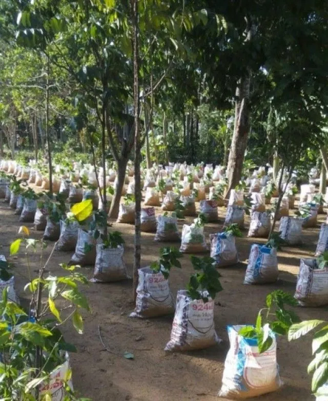 -นำกระสอบปุ๋ย ขนาด 30 กิโลกรัม ใส่ดินผสมปุ๋ยคอก และปุ๋ยสูตร 15-15-15 ปูนขาวครึ่งกำมือ ลงไปในกระสอบปุ๋ยประมาณครึ่งกระสอบ (ดินผสมปุ๋ยประมาณ 10 กิโลกรัม)