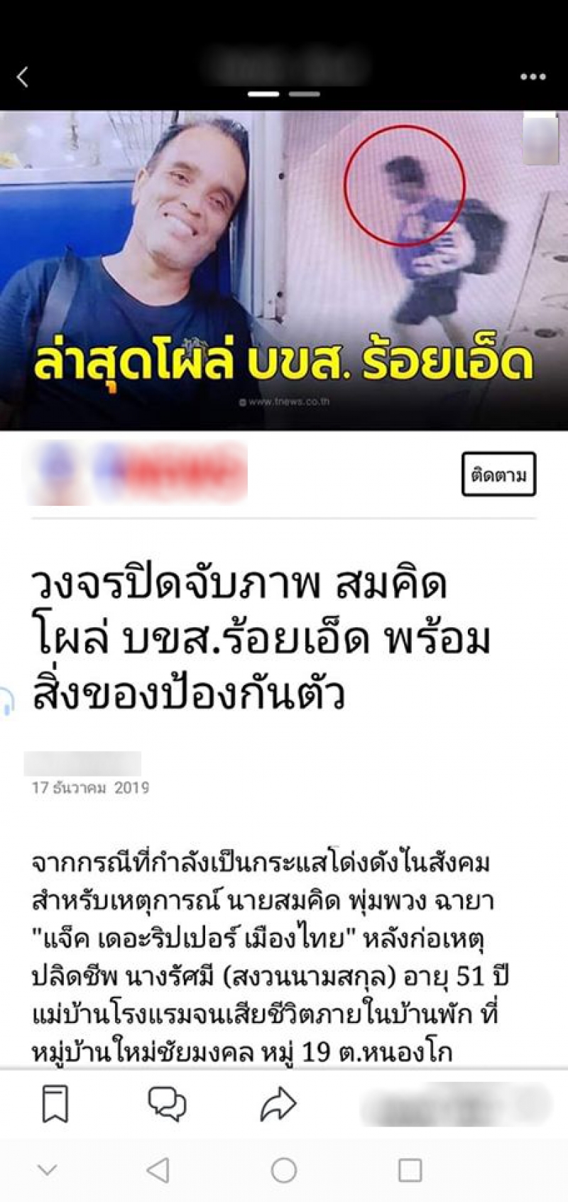 ในช่วงนี้จะได้เห็นการตามหาตัวของฆาตกรต่อเนื่องที่เพิ่งพ้นโทษมาได้ไม่นานแล้วยังก่อเหตุซ้ำอีกครั้งในพื้นที่จังหวัดขอนแก่น ที่กำลังหลบหนีอยู่ในขณะนี้ เมื่อไม่นานมานี้ได้มีข่าวออกมาว่าทางสถานีขนส่งจังหวัดร้อยเอ็ดได้ภาพจากกล้องวงจรปิดผู้ต้องสงสัยรายหนึ่งที่คาดว่าจะเป็น สมคิด ที่ได้มีการแชร์อยู่ในขณะนี้เป็นจำนวนมาก ล่าสุดได้มีผู้ใช้เฟซบุ๊กรายได้โพสต์ภาพและข้อความของชายในกล้องวงจรปิดที่เป็นข่าวในขณะนี้ว่าแท้จริงแล้วไม่ใช่ สมคิด ฆ่าตกรต่อเนื่อง แต่เป็นตนเองที่กำลังเดินทางมาเที่ยวที่เขาค้อ หลังจากที่โพสต์ข้อความ ผู้คนในโลกโซเชียลต่างเข้ามาคอมเม้นท์เป็นจำนวนมาก โดยมีข้อความระบุว่า