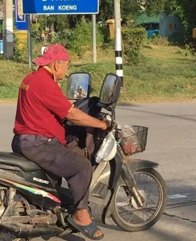 หนุ่มเห็นลุงขับมอเตอร์ไซค์ แต่ต้องสะดุดตากับกระจกมองหลัง