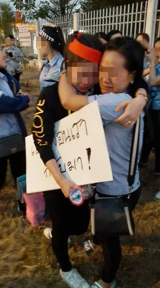 สาวโรงงานกอดคอปล่อยโฮ ชูป้ายเอาเพื่อนเรากลับมา หลังพนักงานบางส่วนถูกเลิกจ้าง