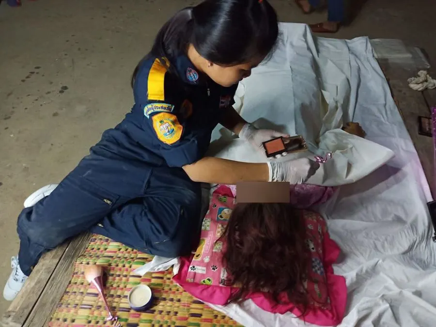ตั้งแต่ไปถึงมือกำมือและบีบแน่นร้องให้สุดเวทนาเป็นที่สุด เราจึงหยุดแต่งหน้าแล้วหันกลับไปถามว่าเด็กสองคนนี้คือใคร นี้คือ ลูกสาวสองคน ของผู้ตายและ ยังมีอีก 1 คนที่ไม่ใด้ มาแสดงว่าคุณแม่วัย 32 นี้มีลูก 3 คน