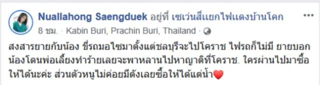 ชีวิตคนเราต้นทุนไม่เท่ากัน บางคนก็มีมากจนไม่เห็นคุณค่า บางคนก็แทบจะไม่มีเลย วันนี้เรามีเรื่องราวของคุณป้าท่านหนึ่งเดินทางด้วยรถมอเตอร์ไซค์มากับหลานสองคน รถก็ไม่มีไฟ ต้องอาศัยนอนหน้าเซเว่นท่ามกลางอากาศหนาว เมื่อวันที่ 19 ธันวาคม ผู้ใช้เฟสบุ๊ครายหนึ่งชื่อ Nuallahong Saengduek ได้โพสต์ข้อความระบุว่า สงสารคุณป้ากับน้อง ขี่รถมอไซค์มาตั้งแต่ชลบุรีจะไปโคราช ไฟรถก็ไม่มี บอกน้องโดนพ่อเลี้ยงทำไม่ดีเลยจะพาหลานไปหาญาติที่โคราช ใครผ่านไปมาซื้อให้ได้นะค่ะ ส่วนตัวหนูไม่ค่อยมีตังเลยซื้อให้ได้แต่น้ำ