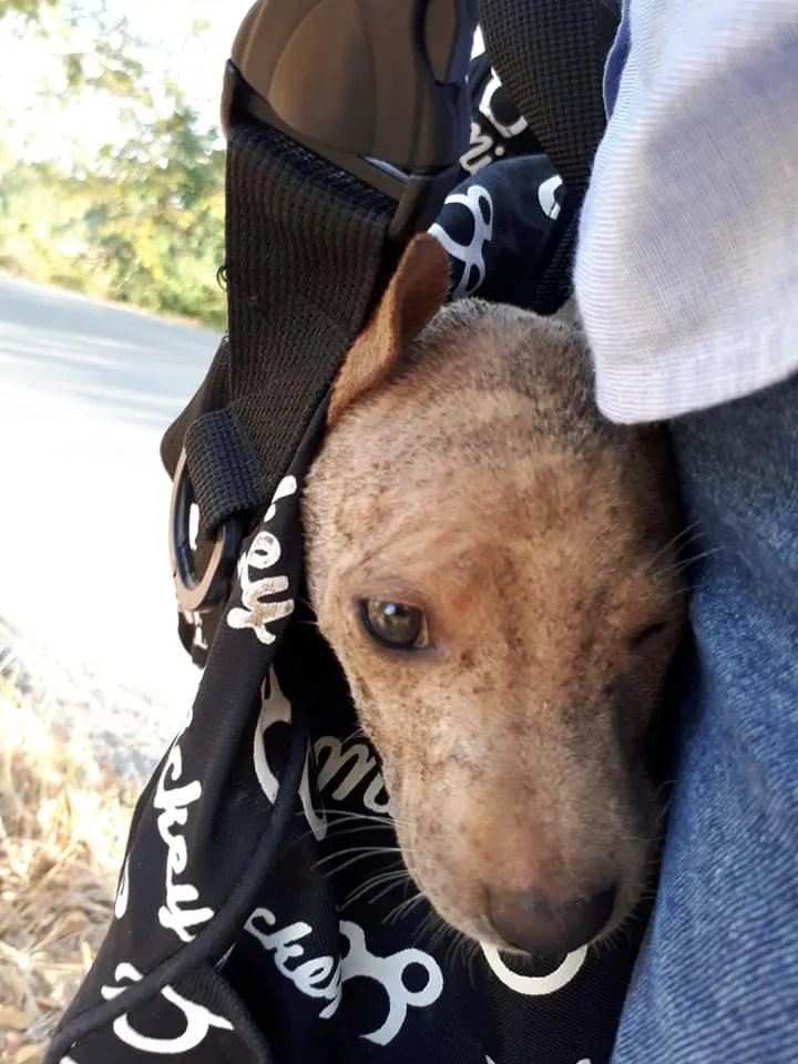 สาวโพสต์เรื่องเล่าระหว่างขี่รถไปทำงานตอนเช้า จู่ๆมีลูกสุนัขตัวหนึ่งวิ่งออกมาขวางหน้ารถของเธอ แถมตื๊อหนัก ไล่อย่างไรก็ไม่ยอมไป เธอเห็นแล้วทนไม่ได้จับใส่กระเป๋ากลับไปเลี้ยงทันทีเพราะดูท่าทางแล้วปล่อยไว้คงโดนรถชนแน่ๆ