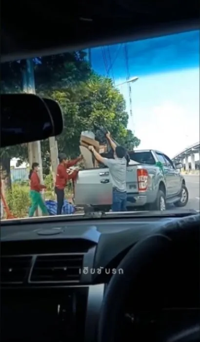 หนุ่มจอดรถอยู่ เห็นคันข้างหน้าขนของลงรถ ซูมดูชัดๆถึงกับรับไม่ได้