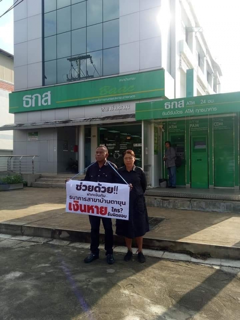 แถลงการณ์ของธนาคารระบุว่า ตามที่ปรากฏข่าวลูกค้าเงินฝากธนาคารเพื่อการเกษตรและสหกรณ์การเกษตร ธกส สาขาบ้านตาขุน จังหวัดสุราษฎร์ธานี ร้องเรียนว่า ได้ฝากเงินไว้กับ ธกส และเงินในบัญชีได้สูญหายไปบางส่วน นั้น ธกส ขอเรียนชี้แจงเกี่ยวกับประเด็นข้างต้นดังนี้