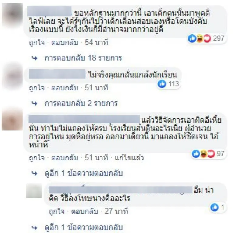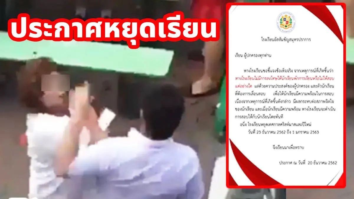 เรียนผู้ปกครองทุกท่าน ทางโรงเรียนขอชี้แจงข้อเท็จจริง จากเหตุการณ์ที่เกิดขึ้นว่าทางโรงเรียนไม่มีการลงโทษให่นักเรียนพักการเรียนหรือไม่ให้สอบแต่อย่างใด แต่ด้วยความประสงค์ของผู้ปกครอง และตัวนักเรียนที่ต้องการเลื่อนสอบ เพื่อให้นักเรียนมีความพร้อมในการสอบเนื่องจากเหตุการณ์ที่เกิดขึ้นดังกล่าว มีผลกระทบต่อสภาพจิตใจของนักเรียน และเมื่อนักเรียนมีความพร้อม ทางโรงเรียนจะดำเนินการสอบให้กับนักเรียนโดยทันที อนึ่ง โรงเรียนหยุดเทศกาลคริสมาสและปีใหม่ วันที่ 23 ธันวาคม 2562 ถึง 1 มกราคม 2563 จึงเรียนมาเพื่อทราบ ประกาศ ณ 20 ธันวามคม 2562 หลังจากที่โพสต์ข้อความ ผู้คนต่างเข้ามาคอมเม้นท์เป็นจำนวนมาก