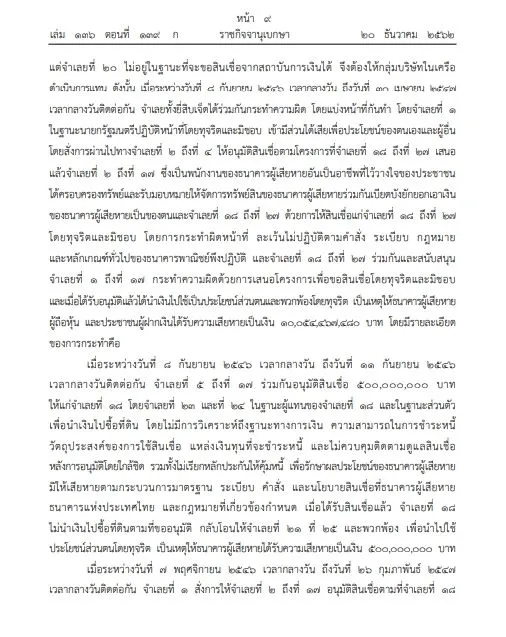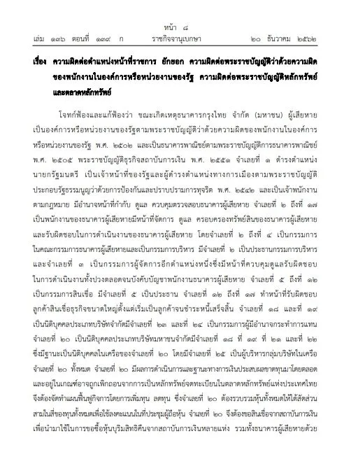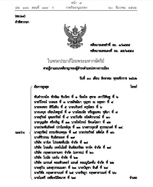 ประกาศราชกิจจาฯ คำพิพากษายกฟ้อง ทักษิณ
