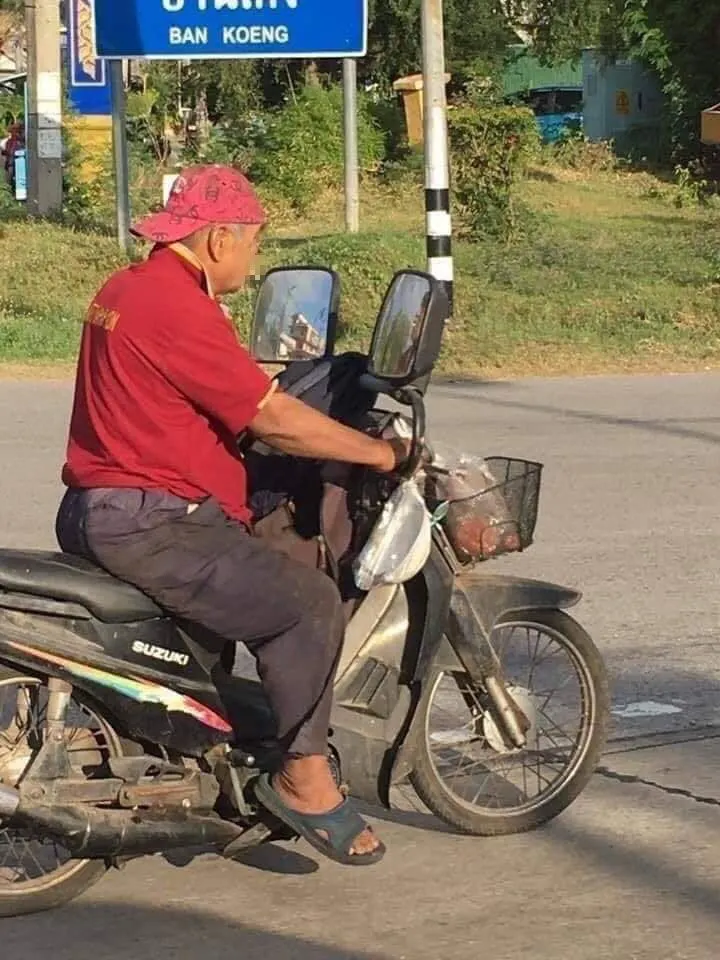 สมาชิกเฟซบุ๊ก Ruengsak Thongduang โพสต์รูปภาพไปยังกลุ่ม ขับรถแบบนี้ต้องประจาน ภูเก็ต เป็นรูปภาพคุณลุงท่านหนึ่งขี่รถจักรยานยนต์อยู่บนถนน แต่ที่ไม่ธรรมดาคือกระจกรถของคุณลุงนั่นเอง